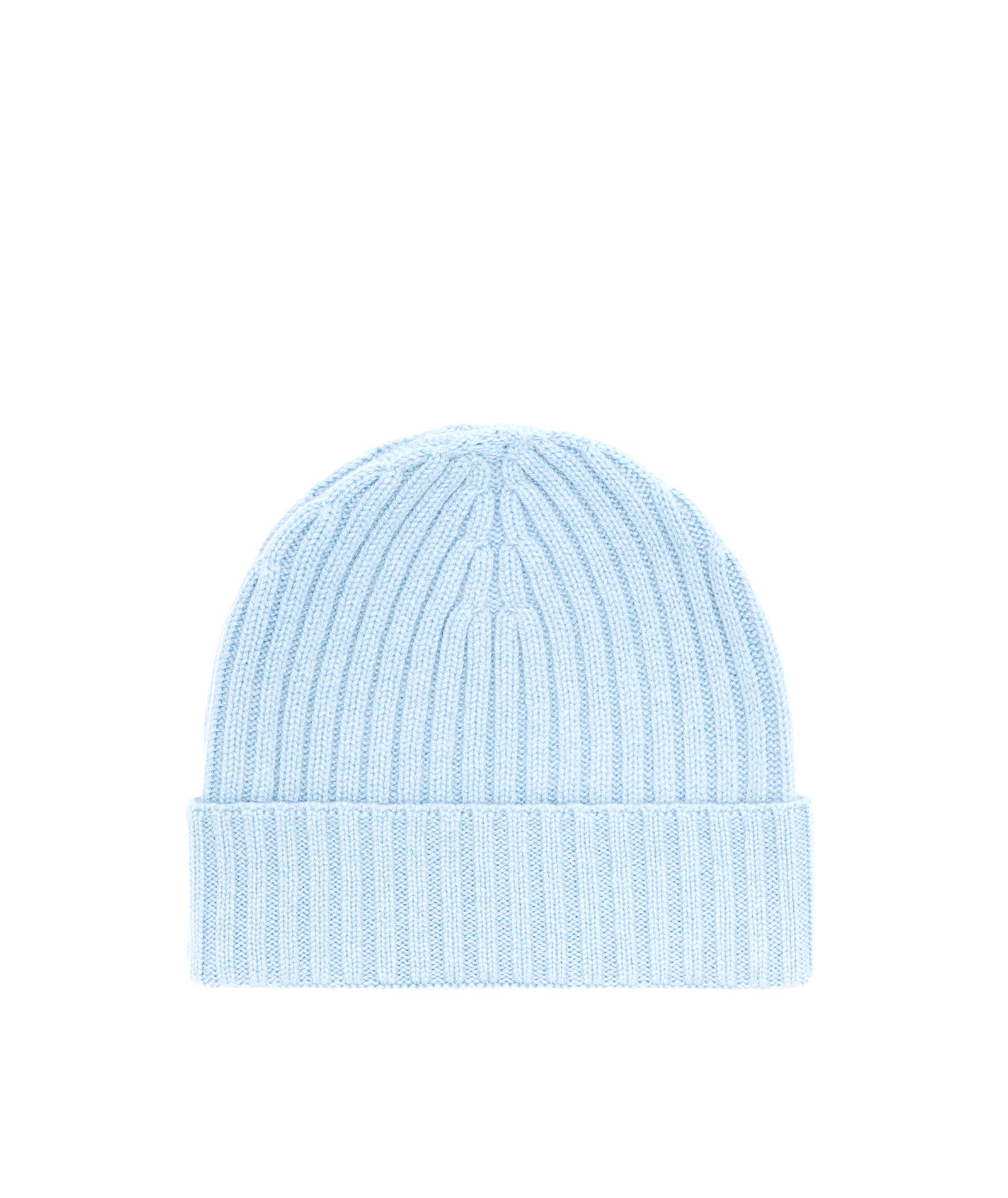 Bonnet réalisé en cachemire avec une finition côtelée bleu clair. Un accessoire chaud et doux pour l’hiver, parfait aussi comme idée cadeau.